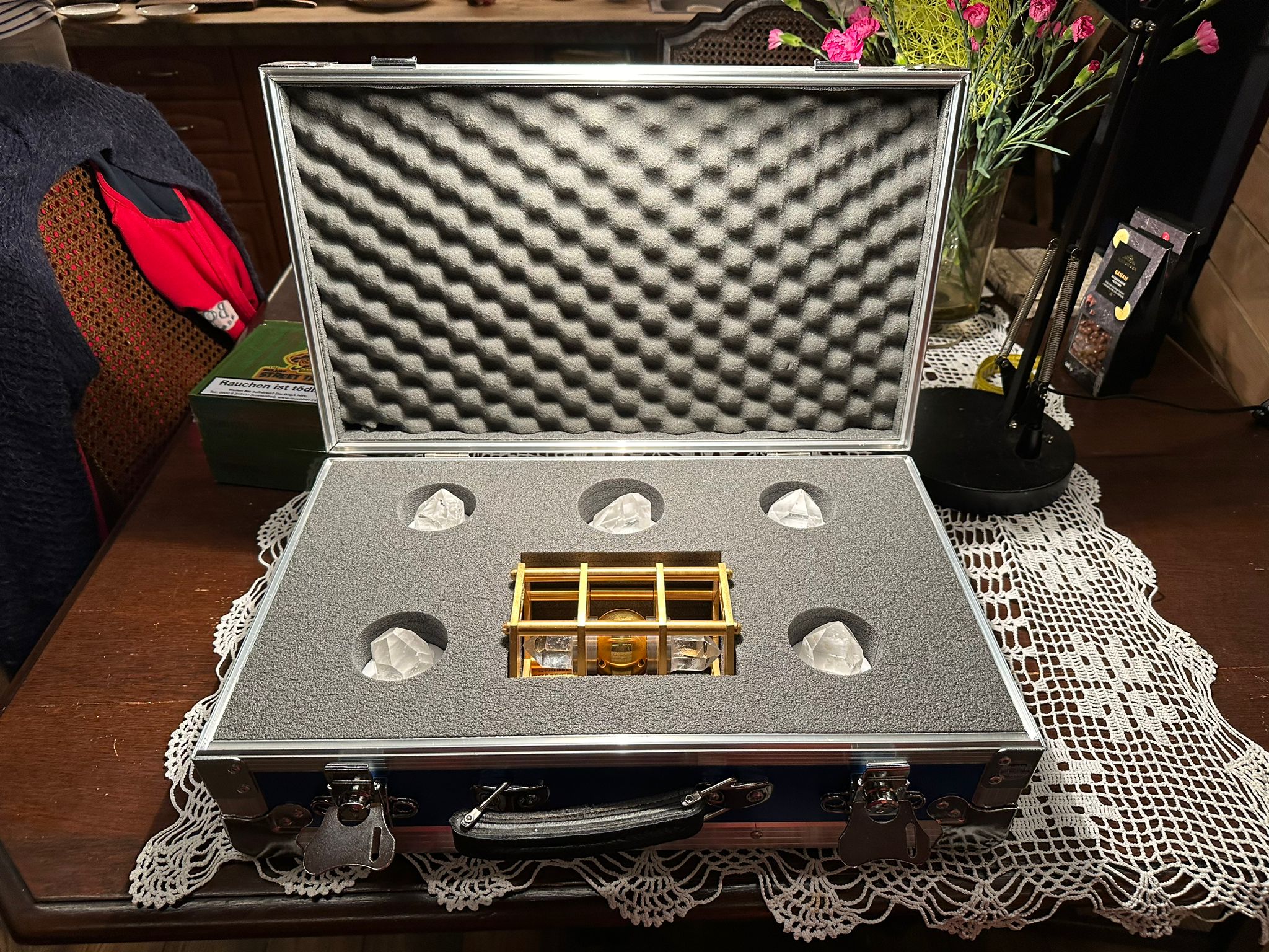 Der Untersetzer basiert auf der Living Water Technology und nutzt die Energie der Natur voll aus, indem er mit speziell entwickeltem Referenzwasser im Inneren des Standes interagiert. Der Ständer belebt (stellt die natürliche Struktur) aller Arten von Flüssigkeiten wieder her, die darauf platziert werden – Wasser, Säfte usw. Er wird besonders für Trinkwasser empfohlen. Die Aktivierungszeit beträgt 15 Sekunden.